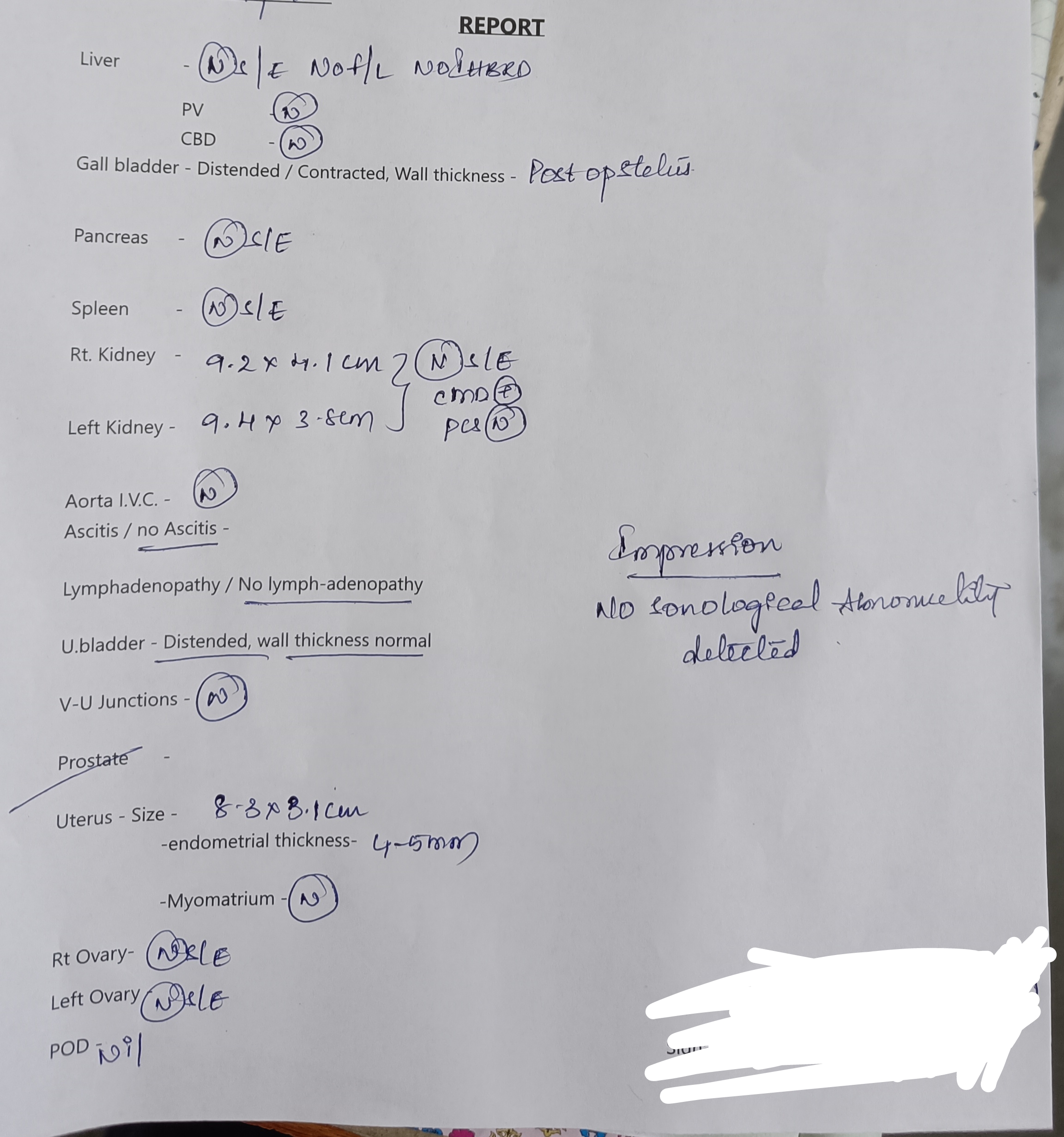 In 2000 she had pain abdomen was diagnosed with cholelithiasis and cholecystectomy was done.